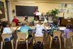 This question often arises because of a parent’s experience of public school education. In most public schools, a teacher works with a class for one, maybe two years. It is difficult for the teacher and child to develop the deep human relationship that is the basis for healthy learning if change is frequent. If a teacher has a class for several years, the teacher and the children come to know and deeply understand each other. The children, feeling secure in a long-term relationship, are better able to learn.