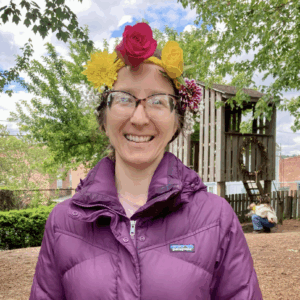 Becky Rudowsky is the Lead Teacher for the 3-day Stepping Stones class and has worked with our newest families in Parent-Child for many years, studying and deepening her connection with Waldorf education and child development for the past 16 years. When not at school, she enjoys spending time with her family, knitting, visiting family, and swimming in the beautiful lakes of her family home in upstate New York.