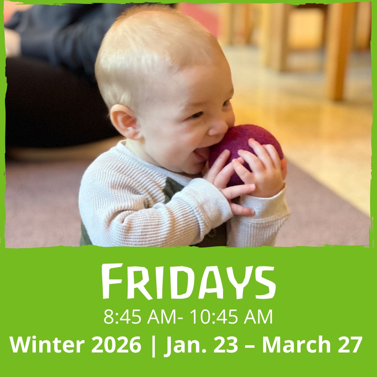 Fridays from 8:45 – 10:45 am. 8 weeks (Jan. 23, 30, Feb. 6, 20, 27, March 6, 20, 27)* Please note that there are several breaks during this session. Weather date TBD.